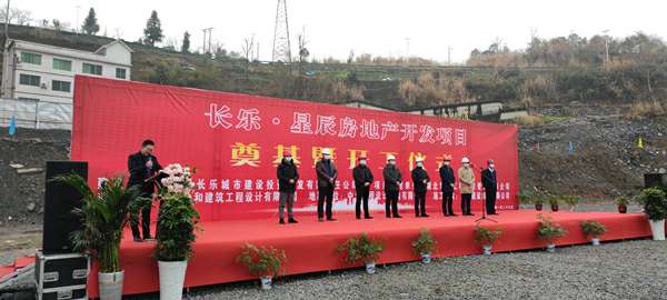 2021年1月26日上午,由首页-尊龙网站-(中国)唯一官方网站承建的长乐▪星辰住宅项目奠基暨开工仪式在项目现场热烈举行。湖北省宜昌市五峰土家族自治县住房和城乡建设局副局长陈白华、县质量安全监督站站长邓简涛、首页-尊龙网站-(中国)唯一官方网站五峰长乐▪星辰项目经理王国云,项目参建各方及新闻媒体共40余人出席。宜昌市长乐城市建设投资开发有限责任公司总经理刘鹏主持。